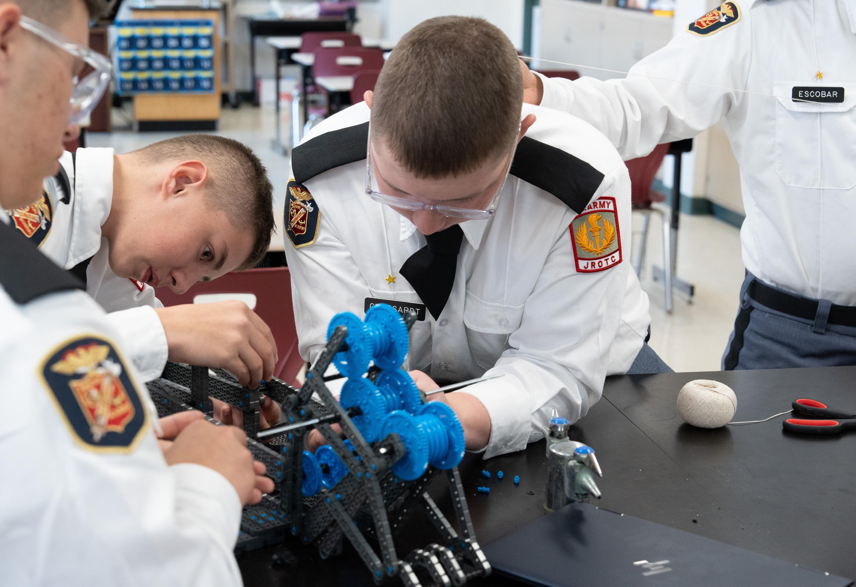 In the classroom, innovative, hands-on lessons engage young cadets, who are guided closely by faculty and their MMA “big brothers” in the high school.