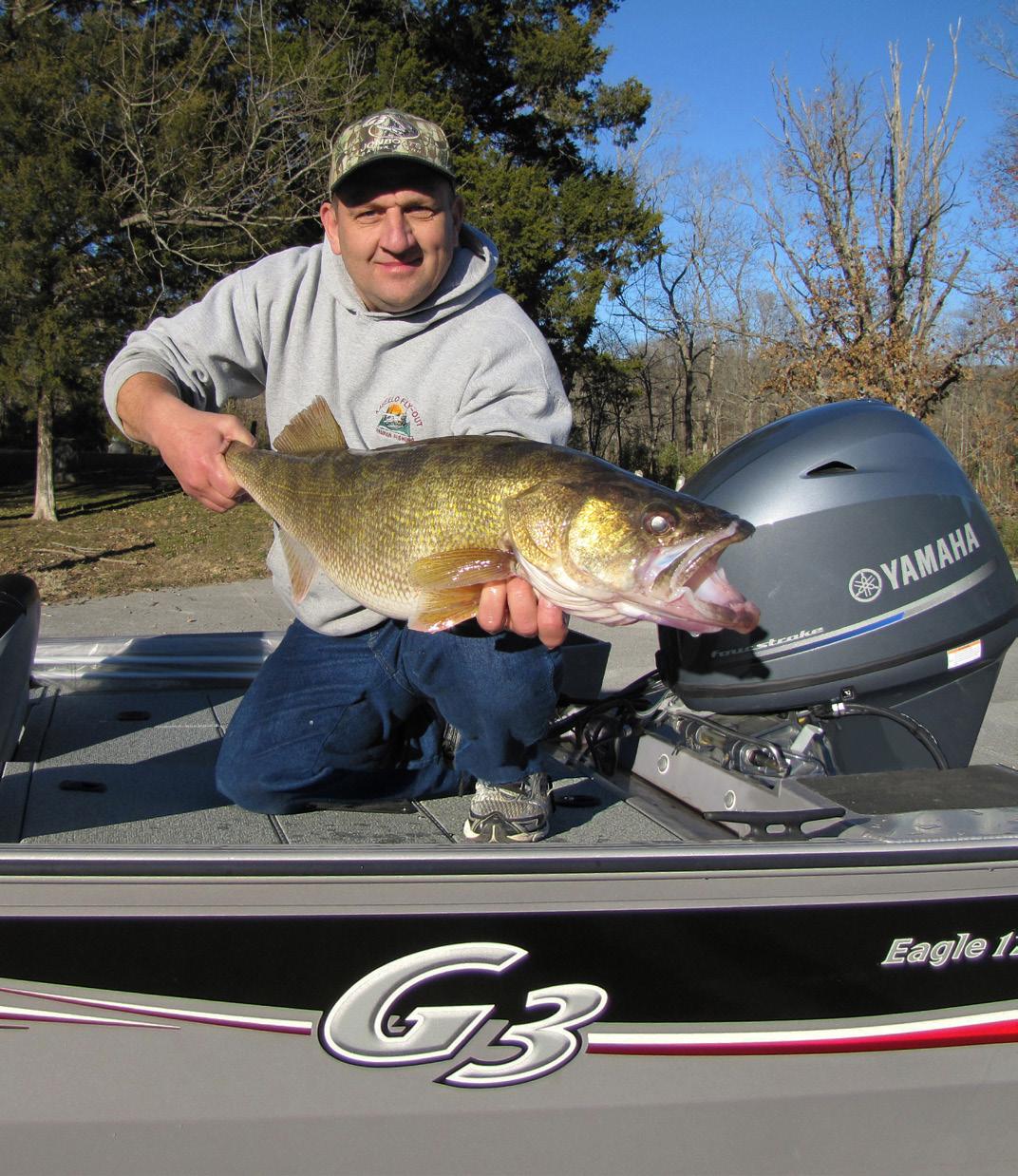 TROLLING—Trolling is an excellent winter technique if you go slow enough. I like to use the current for trolling or bumping baits, lures or jigs across the bottom. I turn my boat sideways and cast out two or three lines. Make sure your baits, jigs or lures are weighted well enough to stay on the bottom. Then watch each rod. Walleye often hook themselves because of this slight motion.