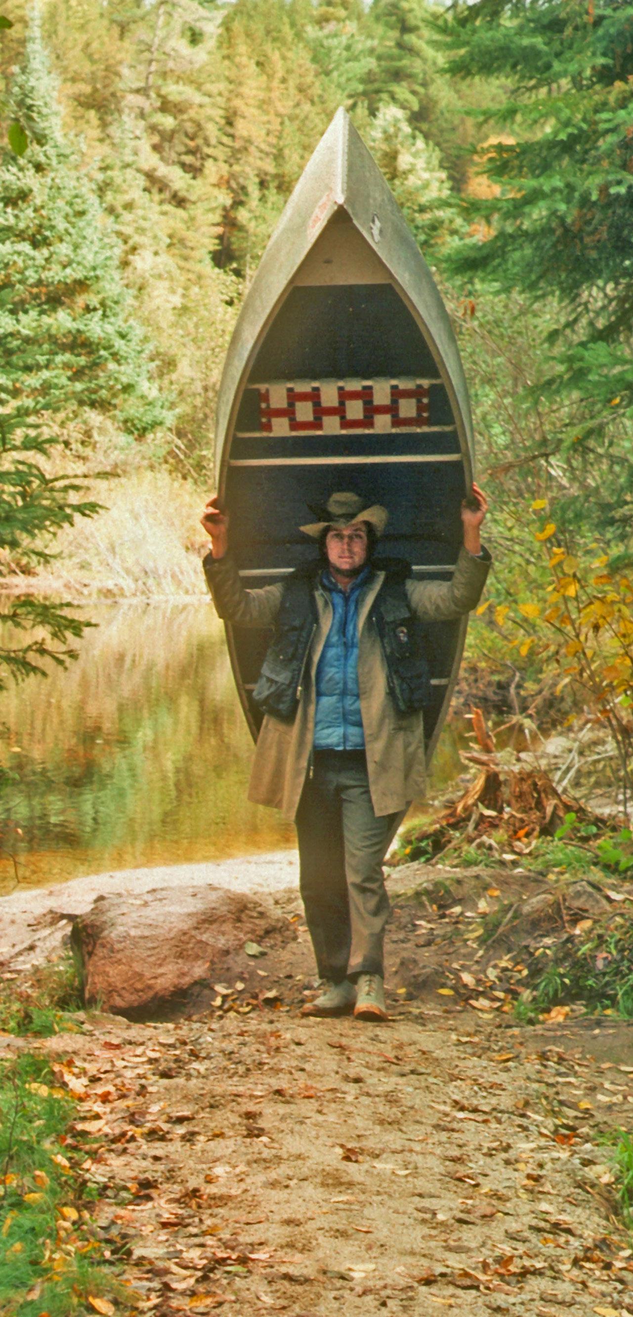 Cover - David Urich carrying the canoe out of the Boundary Waters Canoe Area after a 10-day moose hunting trip.