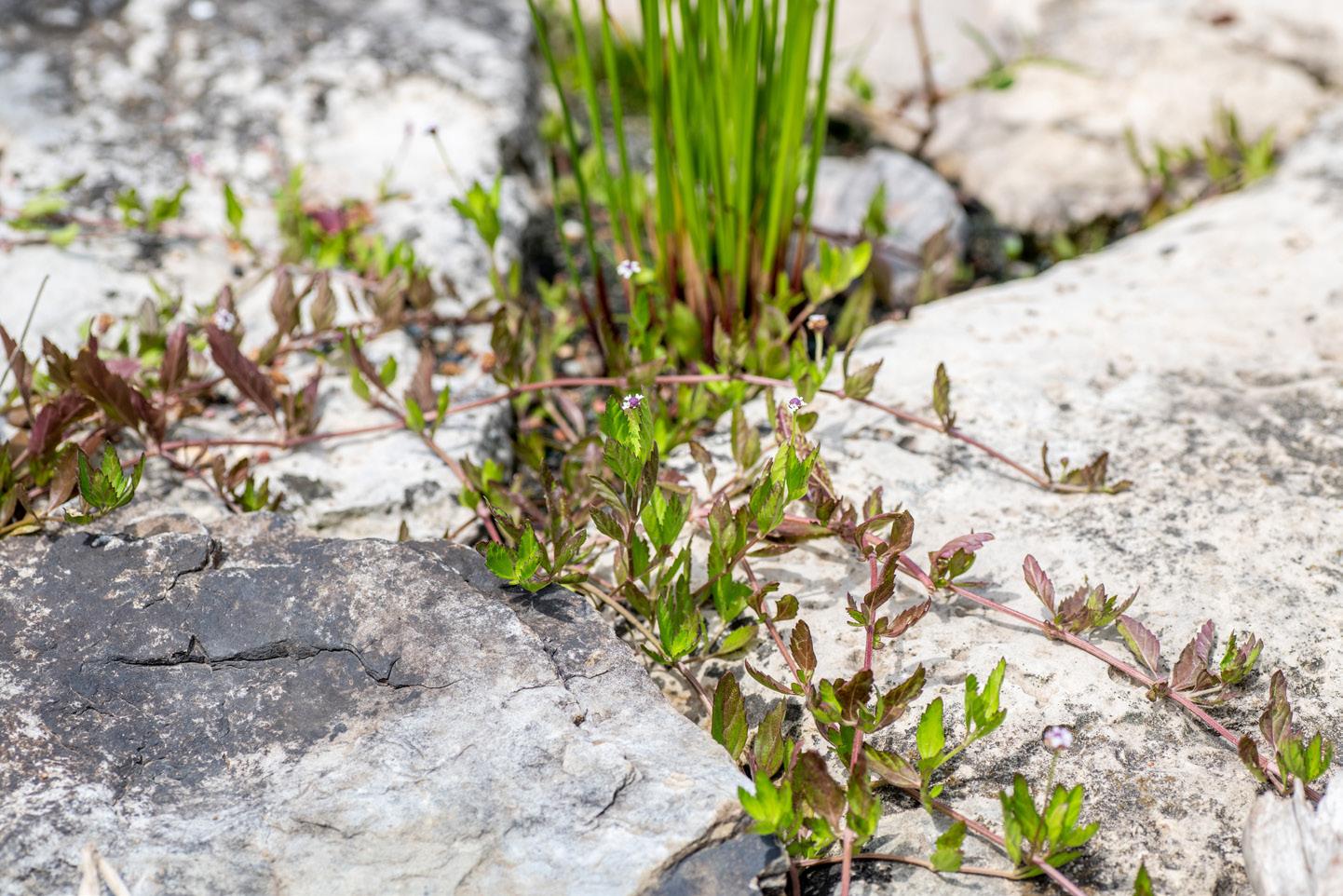 Left - Phyla lanceolata - The creeping tendrils of fogfruit at the border of our urban pond. (Photo: Adrienne Legault)