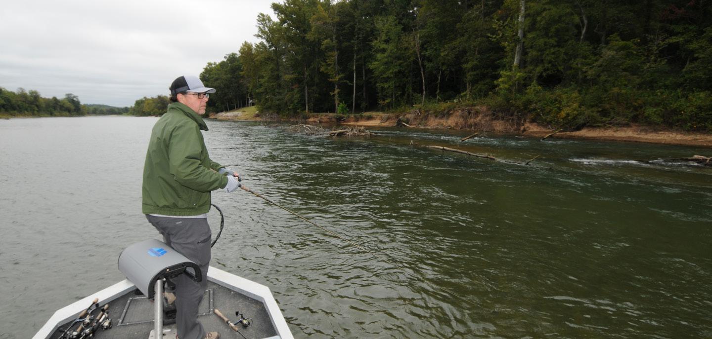 The passage of fall cold fronts can also put a damper on smallmouth fishing in the Current but not always. “Any time you have a front come through the fish shut down on the back side of that front as a general rule,” Smith says. “I have seen times in the fall when a front has come through where the bass have staged up and maybe that day after the front or three days after you can still catch fish even though the barometer is high and there are blue skies.”