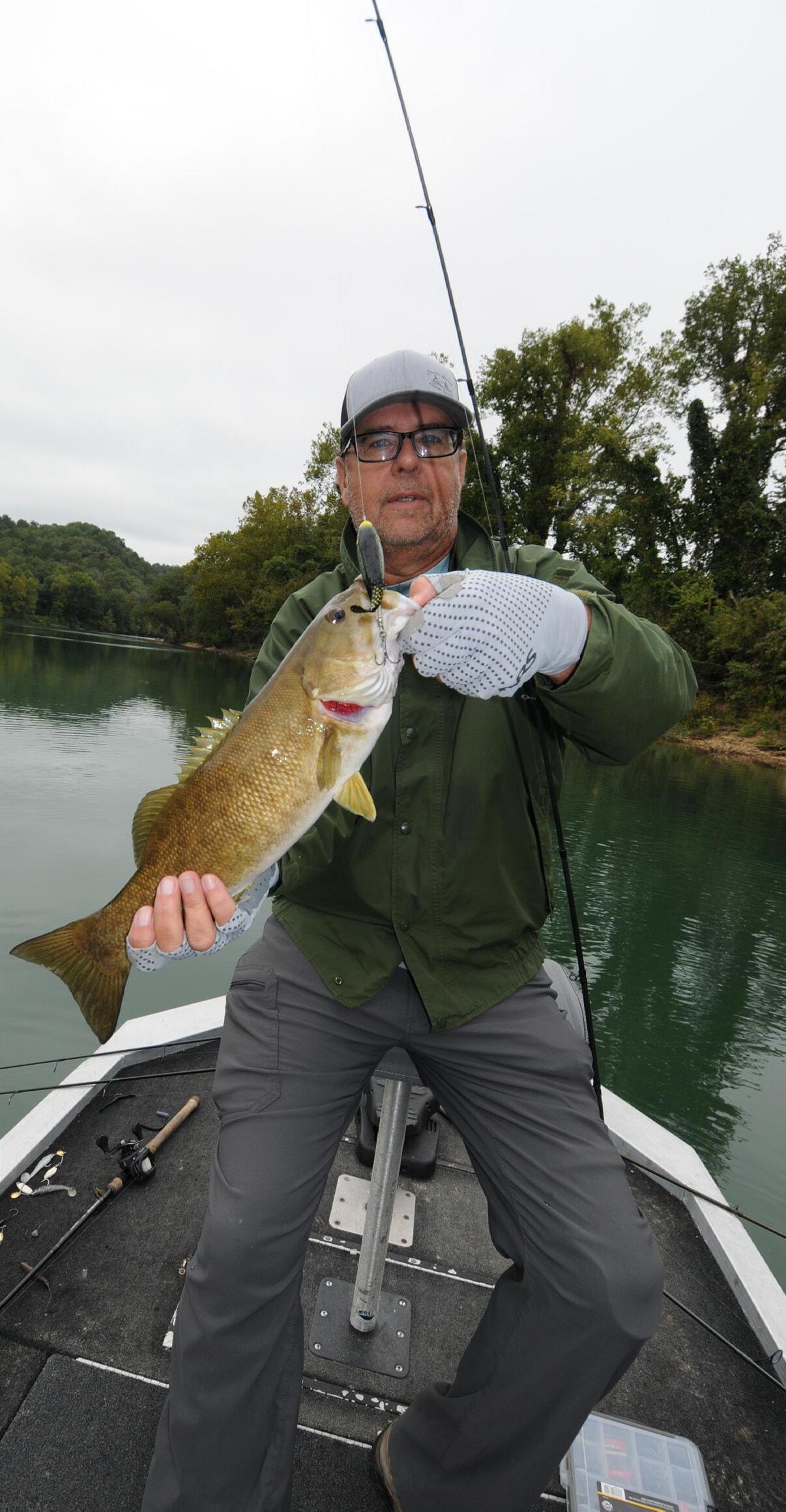Cover - Guide Bill Smith catches Current River smallmouth on a variety of lures including topwater baits throughout the fall.
