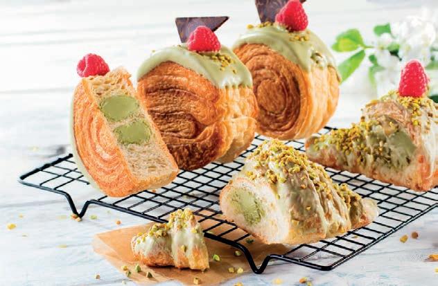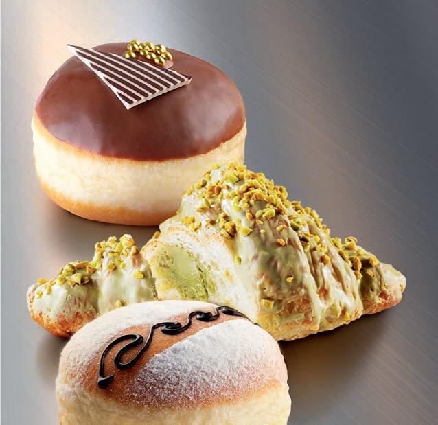 KIDDY PISTACJA to z kolei gotowa pasta pistacjowa przeznaczona do nadziewania produktów, aromatyzowania oraz przygotowywania bitej śmietany i kremów, np. kremu VOLU o smaku pistacjowym. Pod nazwą Neuschnee kryje się natomiast nierozpuszczający się puder dekoracyjny. Odporny na działanie wilgoci, dzięki czemu umożliwia dekorowanie jeszcze ciepłych wypieków. Doskonały do posypywania ciast smażonych, pączków, rolad, wypieków owocowych czy śmietanowych. Co łączy te wszystkie produkty? Wszechstronność użycia: przeznaczone są do nadziewania, garnirowania, smarowania i aromatyzowania. Cechują je też łatwość i szybkość przygotowania, przy zachowaniu wysokiej jakości i powtarzalności użycia, a także wyjątkowy smak i aromat oraz atrakcyjny kolor podnoszący walory wizualne. n