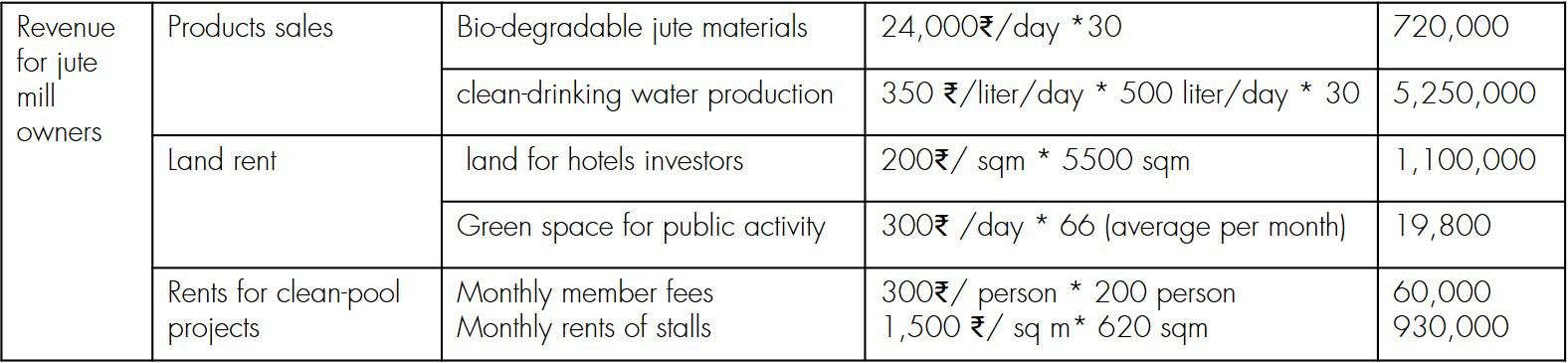 The total revenue for jute mill owners is around INR 8 million ($ 105,000), with 64% comes as drinkable water revenue.