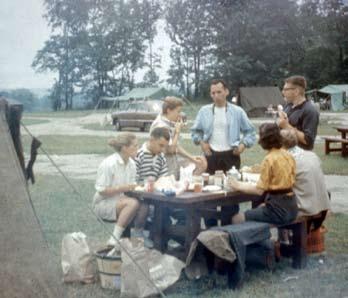 Out of the Classroom City Planning students Bernie Brenner (MCP ‘58) Joe Savitzky (MCP ‘58) and architecture student Julian Beinart, seated (MArch ’56, later to join the MIT faculty), managed to fit in a camping trip with some as-yet-unidentified female companions, circa 1956.