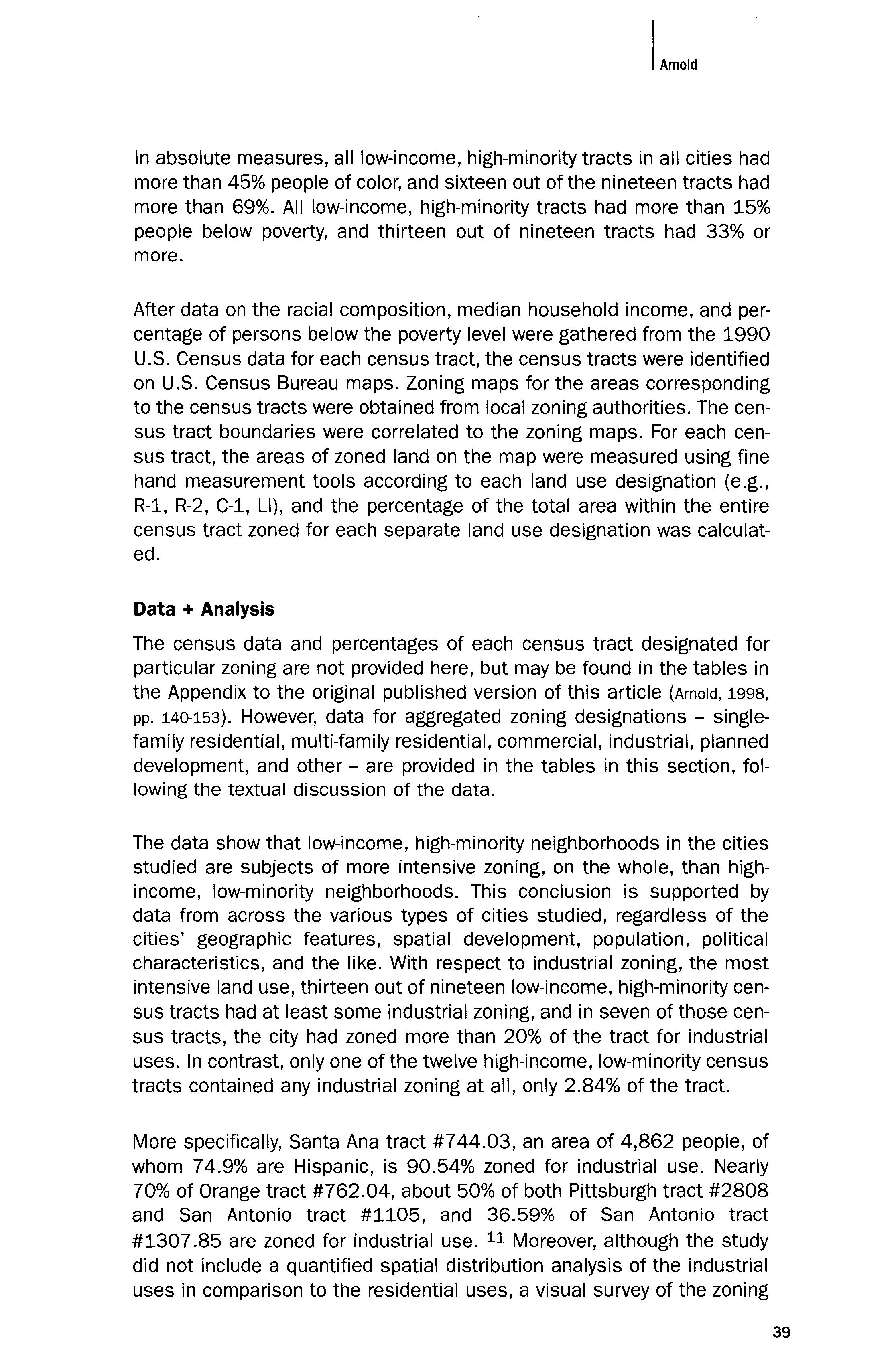CRAIG ANTHONY (TONY) ARNOLD is Professor of Law and Director of the Center for Land Resources at Chapman University School of Law, Orange, California. He received his J.D. with distinction from Stanford Law School and later returned to teach at Stanford as recipient of a prestigious Teaching Fellowship. Professor Arnold is author of the forthcoming book, Environmental Justice: Lessons Learned, and numerous articles on the environmental regulation of land use and property, including "The Reconstitution of Property: Property as a Web of Interests," 26 Harvard Environmental Law Review 281 (2002). He is co-editor of Beyond Litigation: Case Studies in Water Rights Disputes (2002) and editor of the forthcoming book, Wet Growth: Should Water Law Control Land Use? After publishing his seminal study of environmental justice and land use regulation that is reprinted here, Professor Arnold was appointed to the Anaheim Planning Commission, and served a term as its chairman, seeking to bring environmental justice perspectives to land use planning in one of the cities featured in this study.