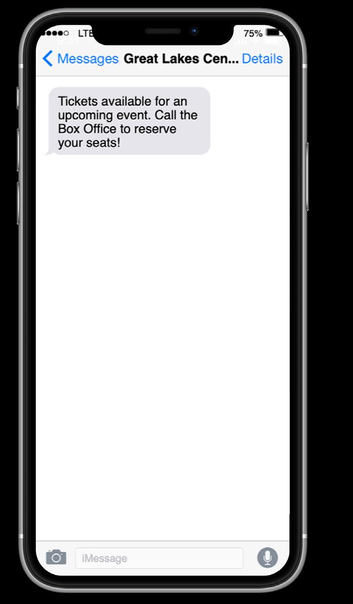 The Center is ADA accessible and is happy to help with special needs you may have during your visit. Please e-mail the Center at info@greatlakescfa.org or call the Box Office at 231.439.2610 to make special requests before the event you are attending. Hearing assistance headsets and ear protection are available to be checked out at the Box Office before an event.