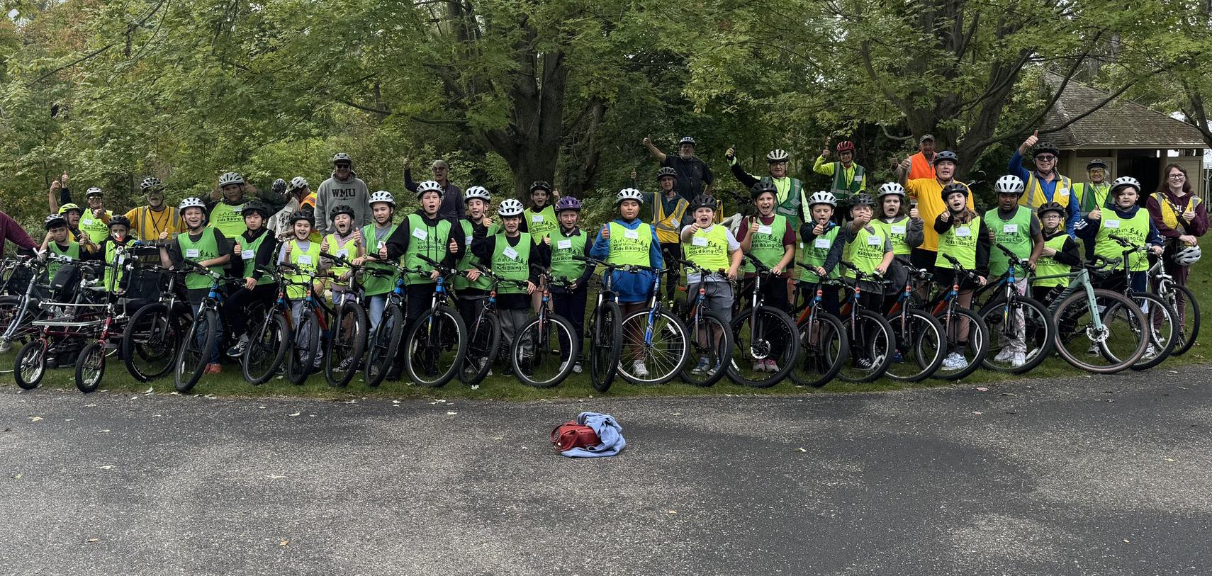 What do 215 5th grade students, including Alanson’s, and dozens of volunteers have in common? They all participated in 2025’s Pedaling with a Purpose, a Top of Michigan Trails Council program. This 8-mile educational bike ride takes place on the North Western State Trail and includes science, geography, history, and most importantly, health. They read maps, take nature walks, discover local history, and learn the life cycle of fish, as well as basic bicycle mechanics and group bicycle riding etiquette. Thank you for this opportunity for our students, Trails Council!