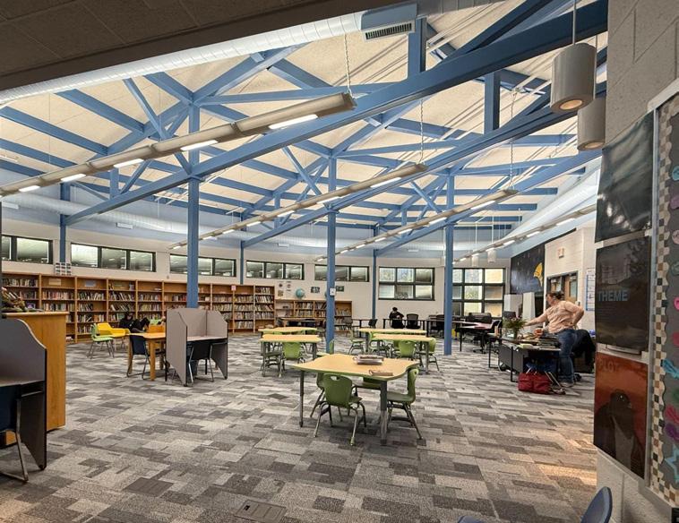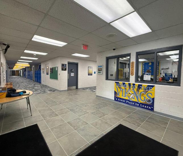 The overhangs that were above each door on the elementary/middle school end of the building have been removed. The brick has been replaced and cleaned up where those canopies used to be. The bus garage is now insulated so it can be heated during the winter months, and a new bus has been purchased. Other projects include: a newly updated locker room, flooring throughout the building (library, elementary/middle school classrooms, high school corridor, main entrance, and cafeteria entrance), new toilet partitions in all bathrooms, and new exterior doors on the elementary/middle school wing for better security.
