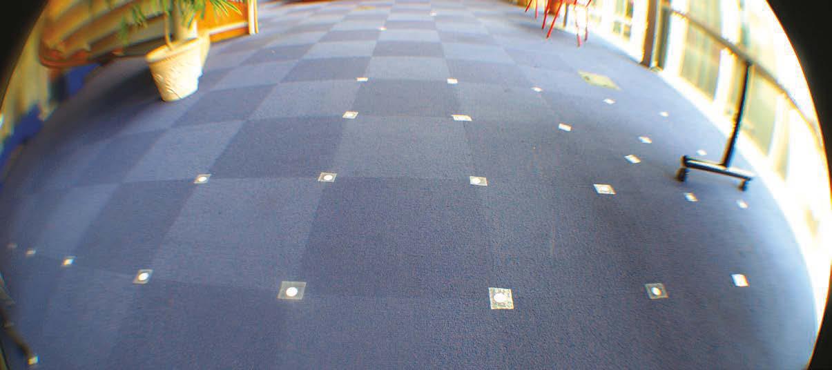 “Does it work?” asks a student in a blue shirt, who pauses to examine the experimental set up that occupies much of the lobby near LIDS headquarters. On this rainy afternoon, the checkered carpet is covered in carefully spaced, numbered, paper dots, and four utility carts, each with a small black radio transmitter box affixed to the top, are in position around the area.