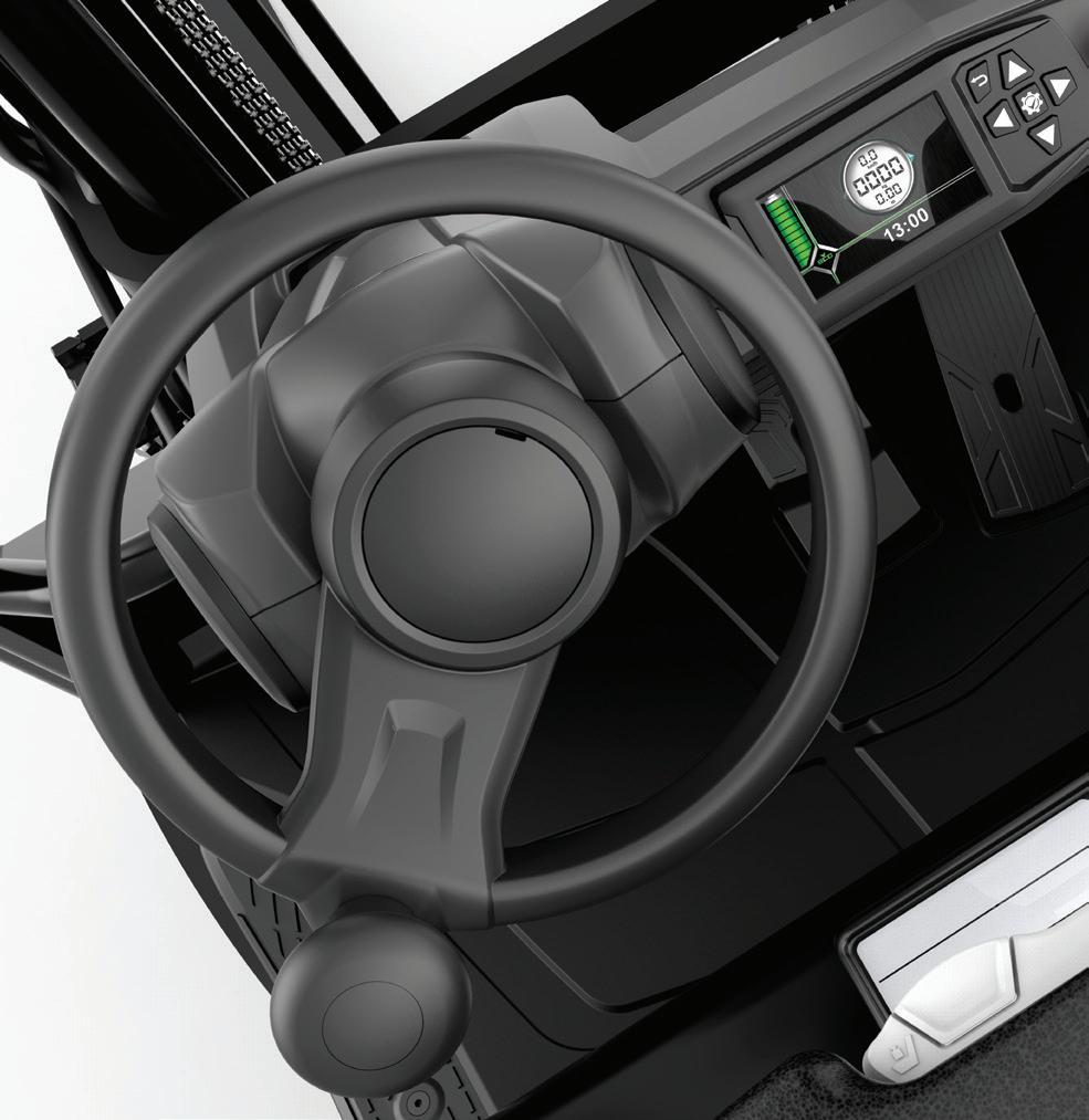 En optimalisert design av masten, rattet, dashbordet og motvekten maksimerer sikten til last, gafler, forhjul og bakhjul og gir sikker, pålitelig drift på små og trange flater.