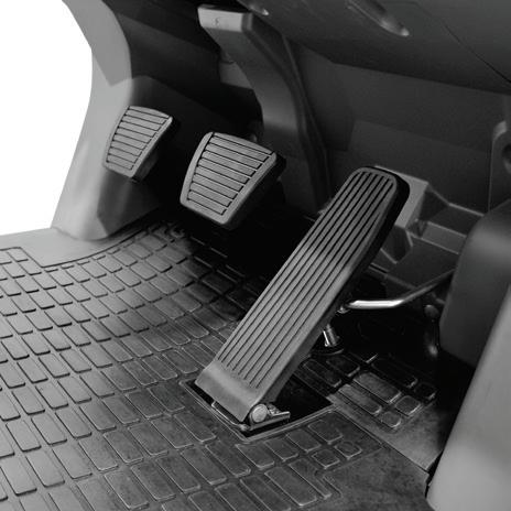 Os pedais estão colocados numa posição familiar para funcionamento intuitivo.