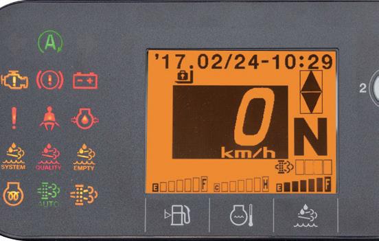 • Czytelny panel wskaźników Zawiera kontrolki ostrzegawcze i ekran LCD wraz z prędkościomierzem, wskaźnikiem poziomu sadzy, zegarem i podwójnym licznikiem godzin pracy.