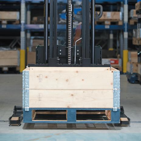 Standardně tandemová kola a nízkoprofilové kované vidlice. Uzavřené palety lze zvedat přímo z podlahy. (Pouze modely se širokým rozchodem)
