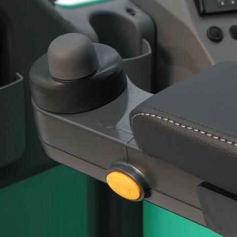 Vejr- og stødbestandigt styrehoved, som er det bedste inden for klassen, med store knapper, som er nemme at nå, placeret i en patentbeskyttet og ergonomisk afstand, så føreren ikke bliver så træt og arbejdet bliver mere sikkert. IP65-klassificeret.