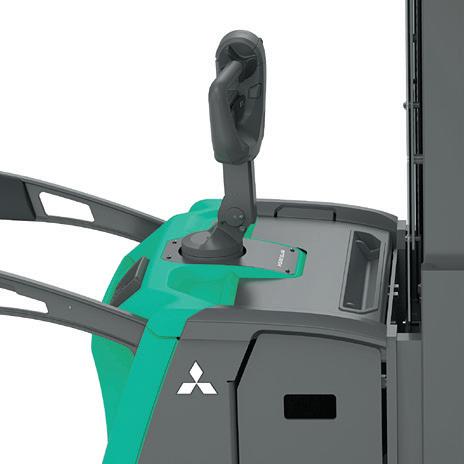 Bij het werken met de vorken naar achteren, zorgt een extra snelheidsregeling ervoor dat een bestuurder tijdens het rijden in een comfortabelere en meer ergonomische, naar voren gerichte houding kan staan. (Optie)