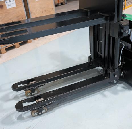 • Geavanceerde telescopische vorken: Deze stapelaars zijn uitgerust met telescopische vorken die met een druk op de knop uitschuiven. Zo kunnen pallets die twee diep zijn opgeslagen efficiënt worden verwerkt. Dit verhoogt niet alleen de productiviteit, maar zorgt ook voor het veilig en nauwkeurig plaatsen en ophalen van pallets.