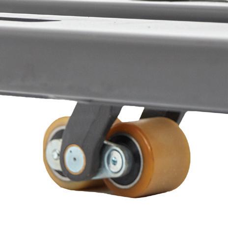 Standaard uitgerust met tandemwielen en platte, gesmede vorken. Gesloten pallets kunnen rechtstreeks van de vloer worden opgetild. (Alleen voor breedspoormodellen)