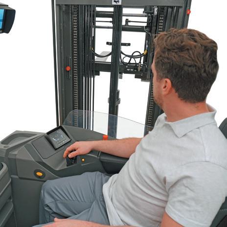Cabin includes many of the same features as the new reach truck models for increased familiarity, including: Ergologic Joystick, mini steering wheel on floating armrest, tilting seat, hands-free direction controls, and electrically adjustable floor height.