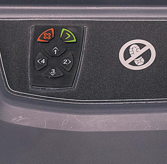 O melhor da sua classe, com proteção contra intempéries e resistência a impactos. Os botões grandes e de fácil alcance estão a uma distância ergonómica patenteada, a fim de reduzir a fadiga e tornar o funcionamento mais seguro. Classificação IP65.