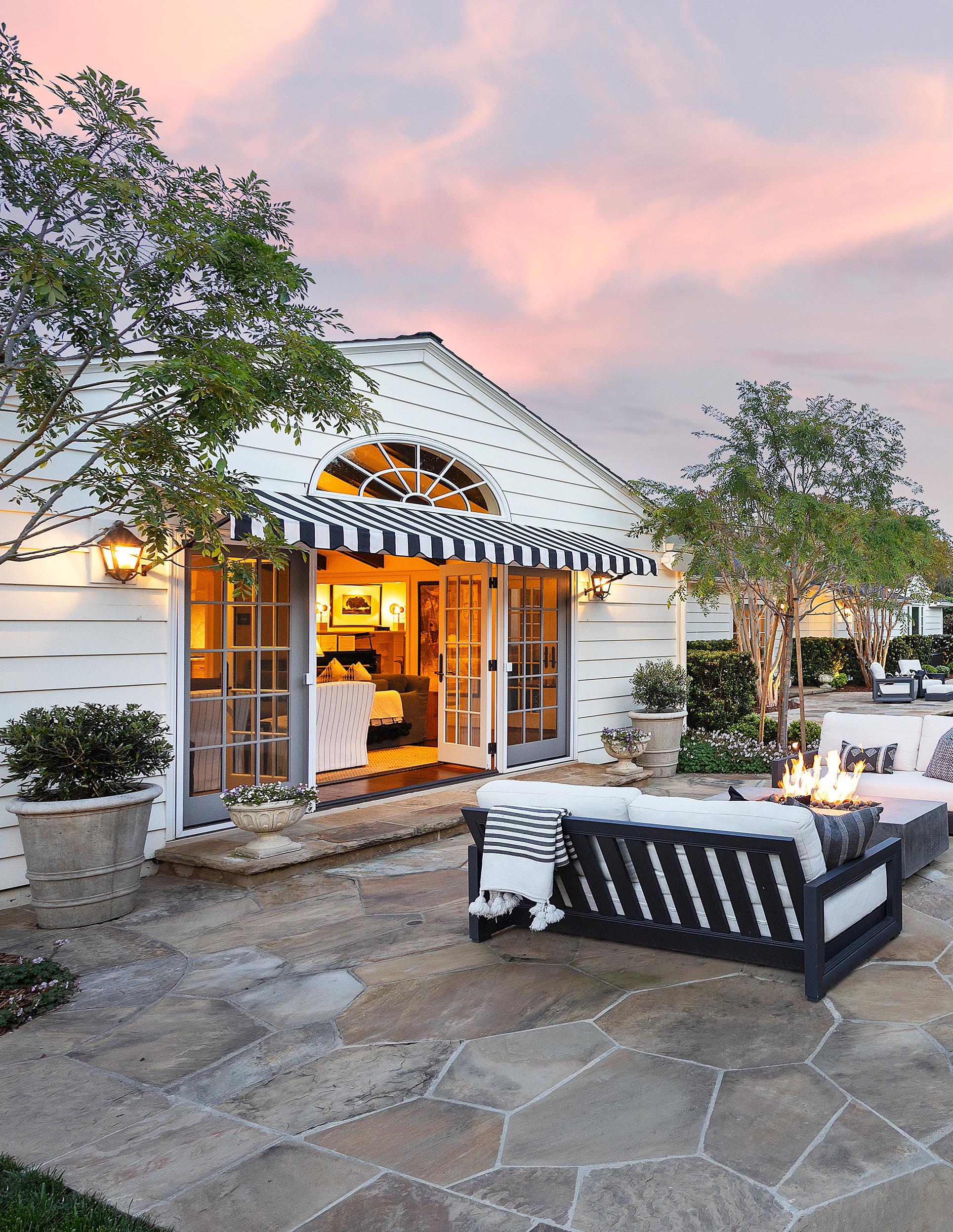 Nestled behind double gates, the private grounds offer stone terraces, lush lawns, a sparkling pool, built-in outdoor kitchen, vibrant hydrangeas, and a stately tree-lined motor court.