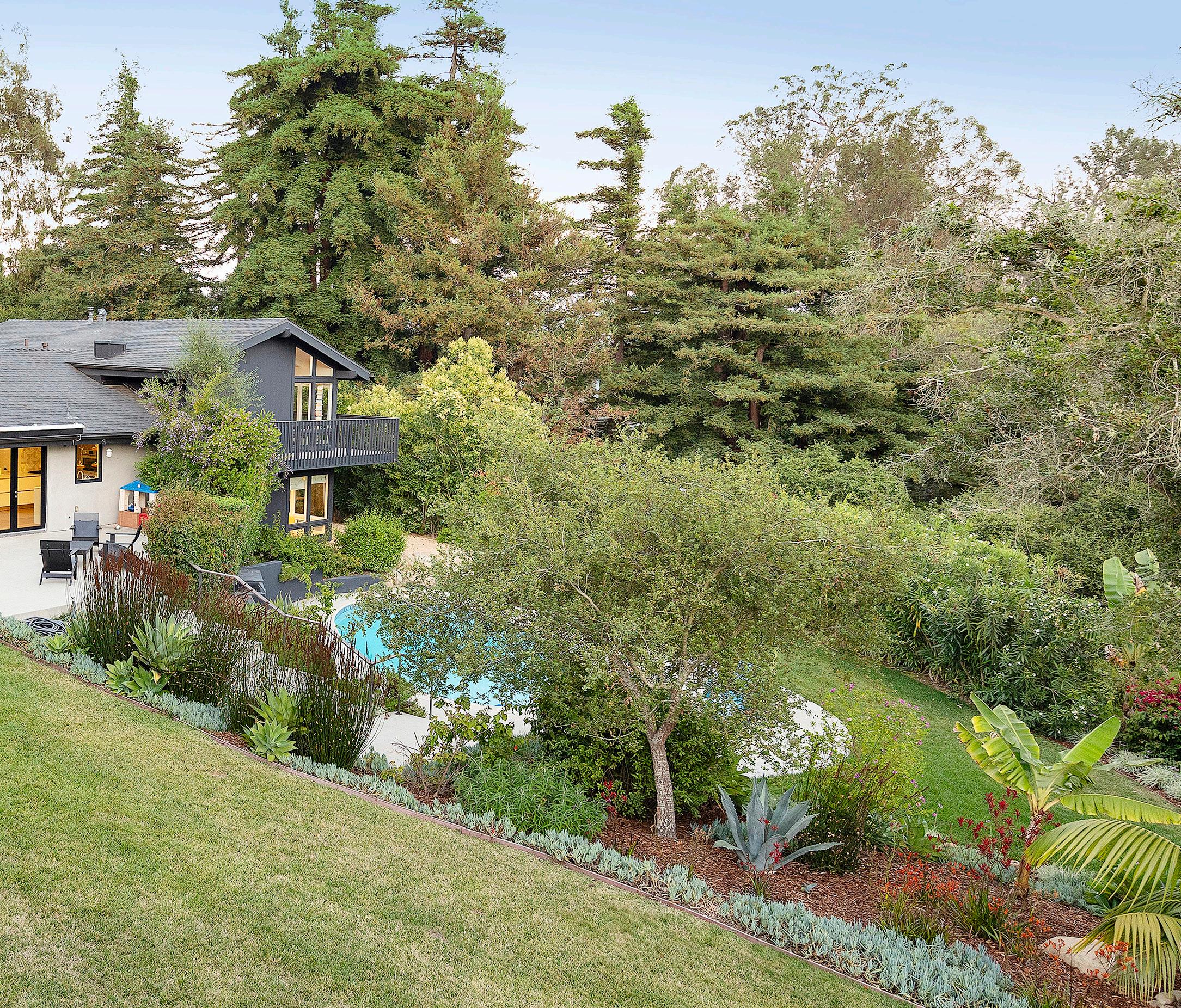 Combining a modern remodel with lush views of Redwoods, this bright home is a peaceful, nature-focused retreat – just 3 minutes from Montecito’s Upper and Lower Village. Enjoying total privacy without any visible neighbors and positioned off a quiet street, this magical property borders Hale Park and offers its own private entrance to the park from the backyard.