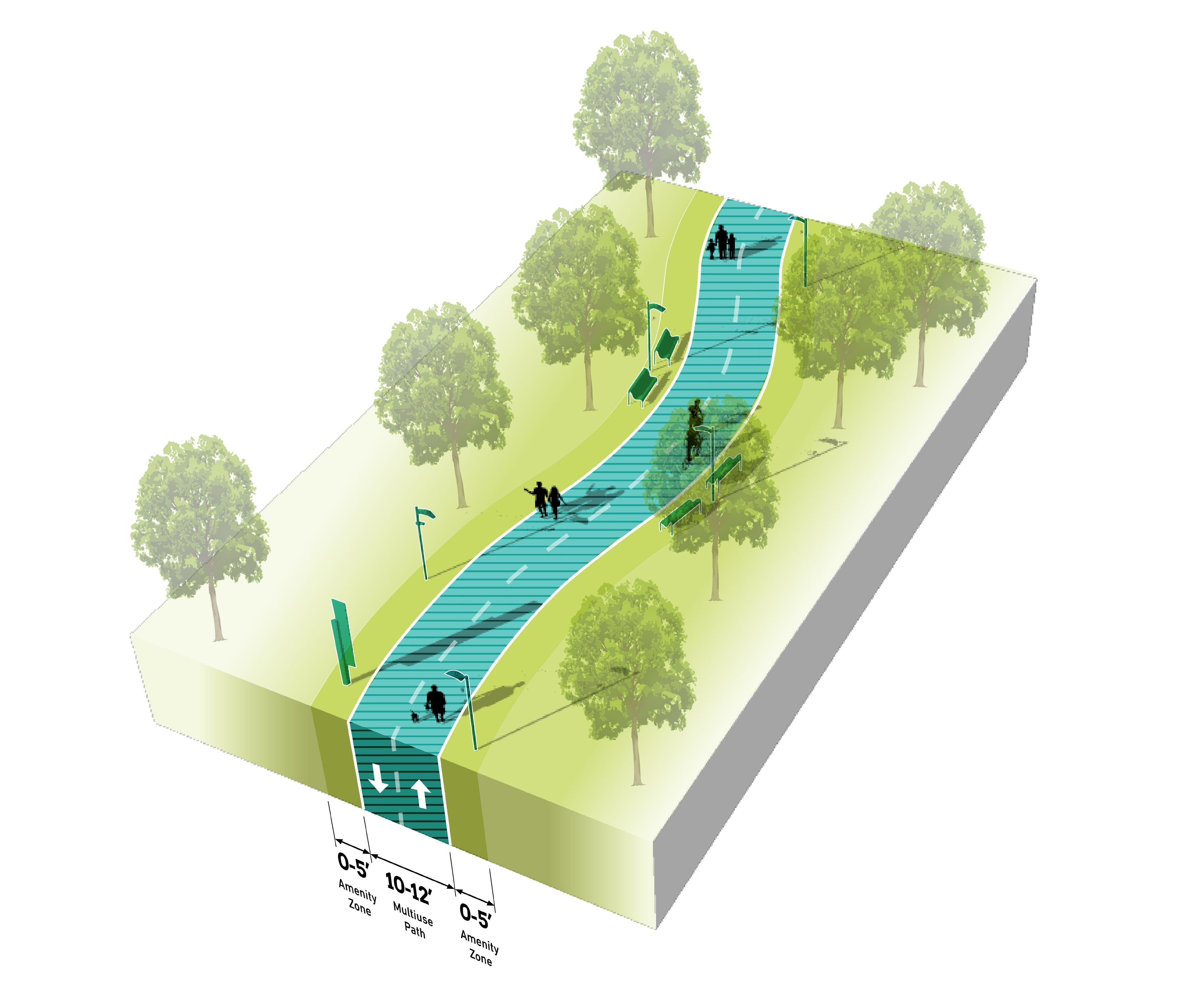 2 Walkable and trail-oriented development within walkshed of TDD boundary linked to Downtown TOD