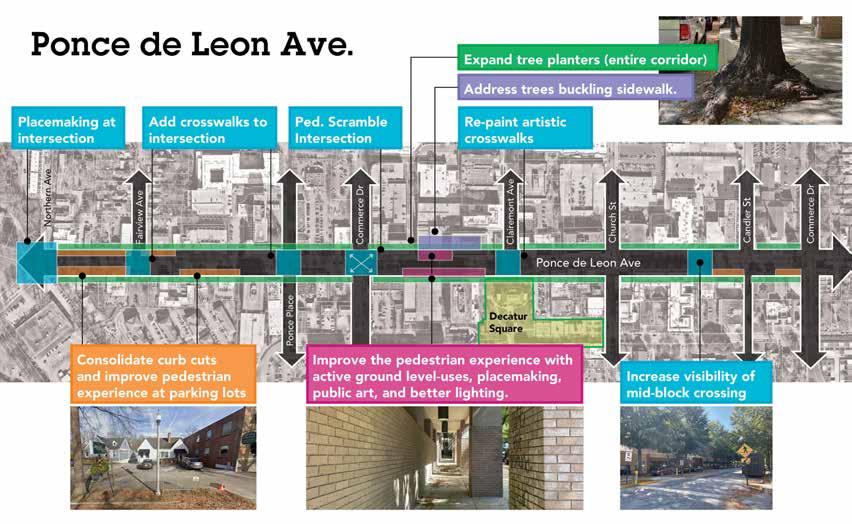 1 Reinvest in the Ponce de Leon streetscape to make it the premier downtown street with consistent street trees, ample sidewalks, safer crosswalks, and active storefronts.