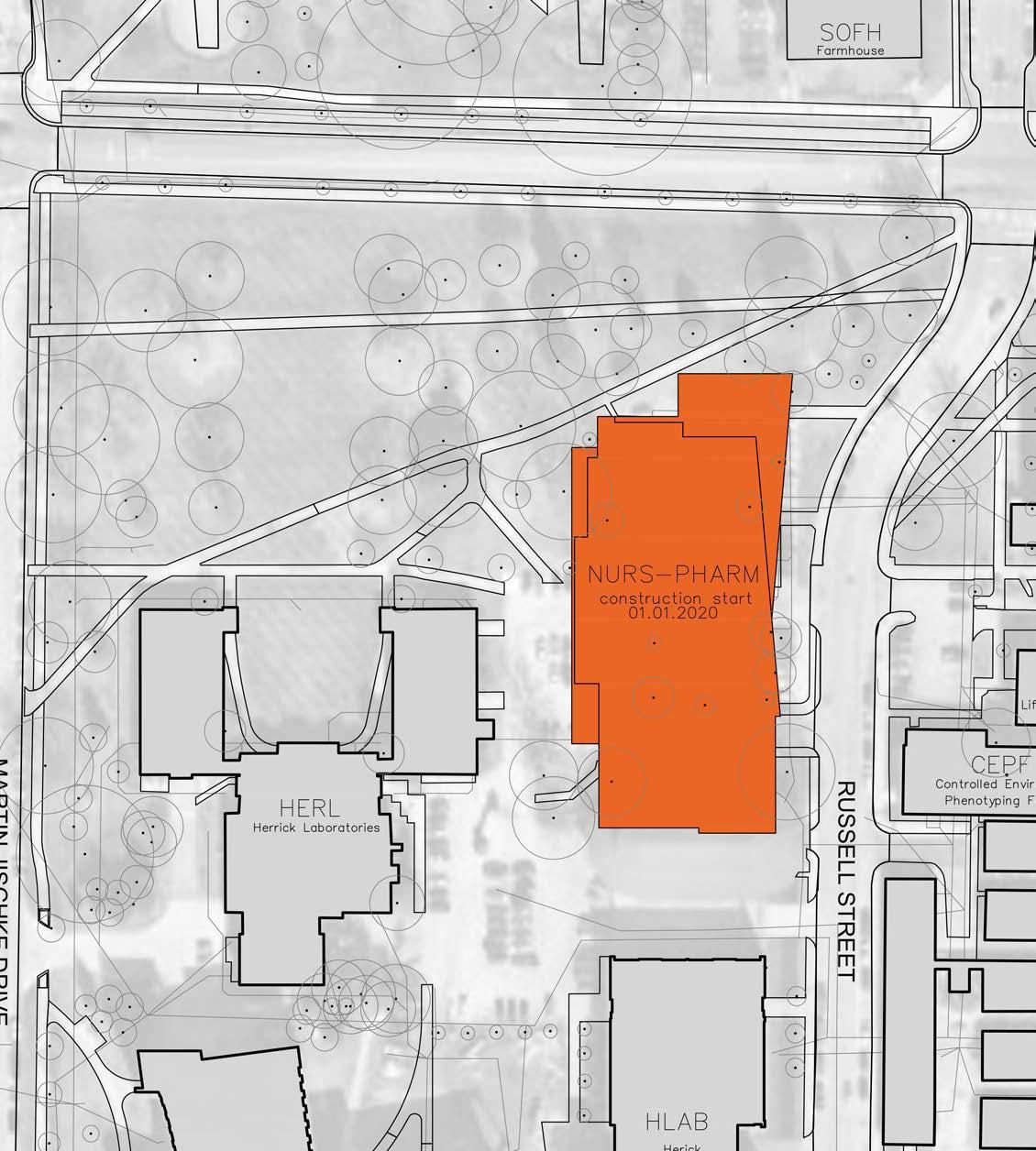 Nursing and Pharmacy building is a capital priority project approved by the board of trustees. The project will include a new facility and may also be able to leverage stormwater management in the landscape. The buildings site will replace existing buildings at the SE corner of State and Russel Streets. focus areas