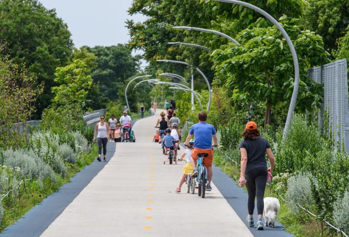 • Public green spaces connected to trails