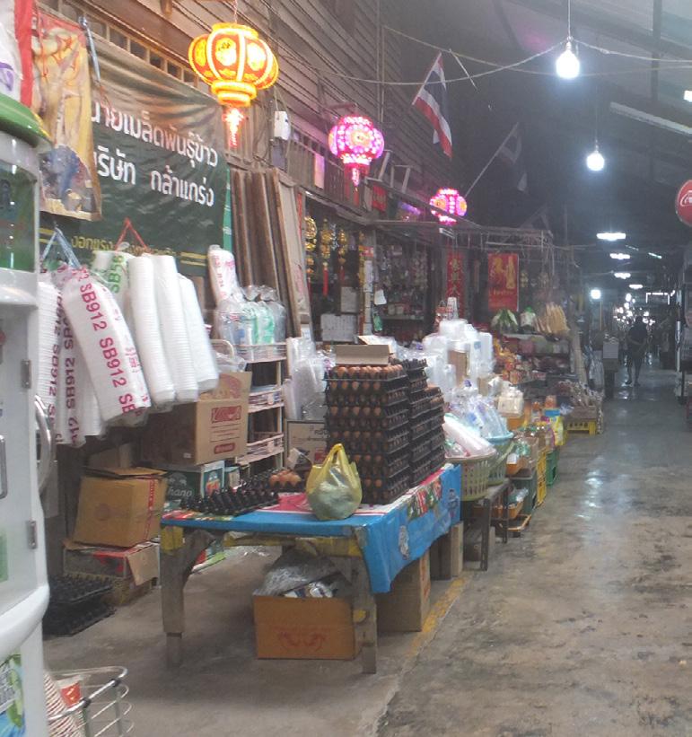 は、プラウェートブリーロム運河 沿いに位置し、チャチューンサオ 県バーンポー郡テープラート地区 と、サムットプラーカーン県バー ンボー郡クローンスアン地区の二 県にまたがって形成された歴史的市場である。成立はラーマ