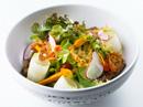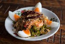 Crunchy winged bean salad with prawn, squid and soft boiled egg in chili paste dressing.