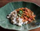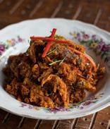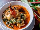 Surat Thani’s colossal crab meat lumps and crab roe in spicy red curry with cha plu leaves perfect match with rice or rice vermicelli.