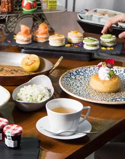 の食材をパレットにしたためた芸術的な料理を堪能ください。 特に注目すべきはマグロのタルタルステーキやドーバー海峡でとれる舌平目のムニエル、タイのシャロレー牛肉などはフレンチビストロの神髄としてお楽しみいただけるはずです。紅茶愛好家には、伝統的なフレンチペストリー、洋菓子やケーキなどのペストリーを選び抜かれた T W G の紅茶と一緒にお召し上が りいただけます。