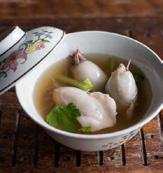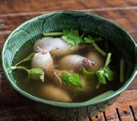 Clear broth of baby squids stuffed with seasoned ground pork.