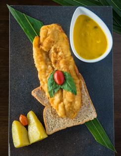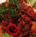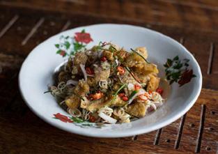Chunks of crispy leaf fish in spicy dressing & fresh lemongrass.
