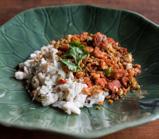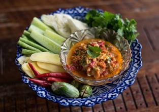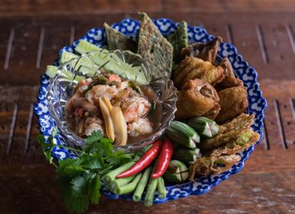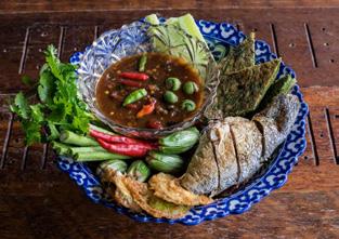Chili sauce made from Koh Chang’s finest shrimp paste, served with wholes mackerel and local vegetables.