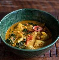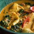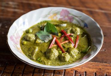 Chewy homemade fish balls in rich & tasty green curry.