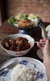 Slow-cocked massaman curry with tender beef shank, potatoes & peanuts.