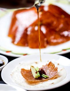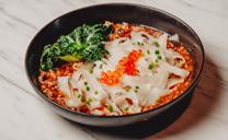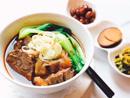 Slice marbled beef shank, tossed with spicy dressing and garnished with garlic oil.