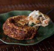 Steamed Surat Thani’s colossal crab meat lumps with curry paste served in banana-leave cups.