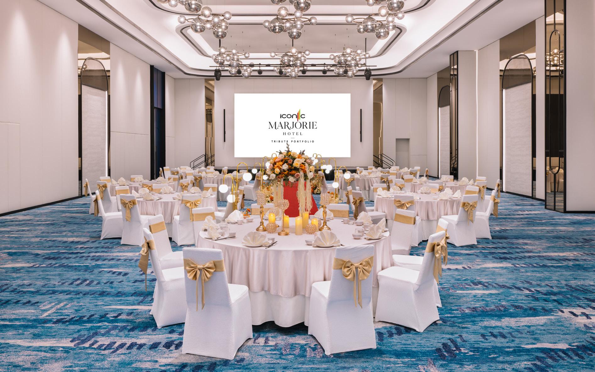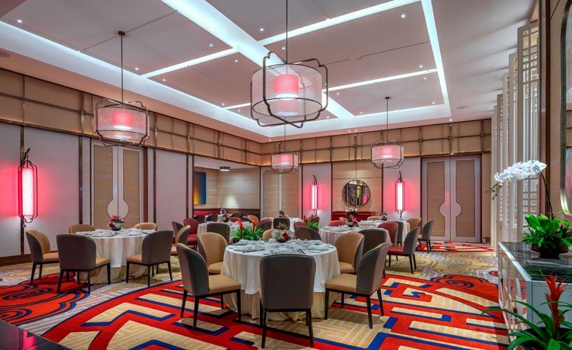 In the ballroom, Royal Thai’s carpets are designed for impact as well as endurance. Flowing patterns