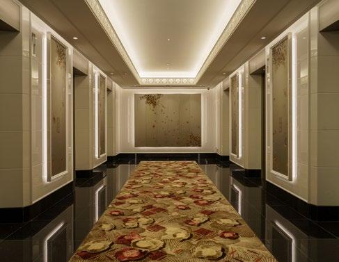 Axminster carpets were also specified for several gaming spaces at the casino. For these areas, Royal Thai incorporated brighter-coloured carpeting to conjure a sense of excitement. In the hotel’s dining establishments, handmade Royal Thai floor coverings with a calmer palette and style were used instead to align with the restaurants’ fine dining environment.