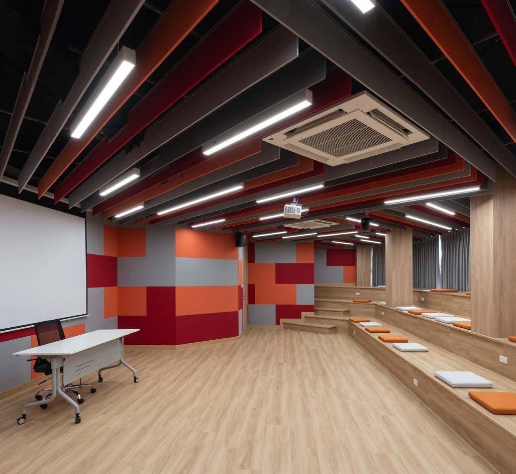 Storage Studio, a design studio focusing on interior spaces, took on the challenge of transforming the MK Service Training Centre, a 7-storey ageing structure, into a modern and functional learning space. By overcoming structural limitations and integrating MK Group’s signature colours, the team successfully created a dynamic, inviting, and purposeful environment for training and development. The project also saw the integration of RT Acoustic for high-quality acoustic treatments, ensuring both aesthetic appeal and functional excellence.