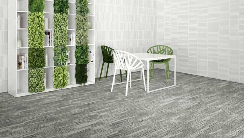 covering solution. Crafted with utmost finesse, this 100% solution-dyed modular carpet tile comes with an understated organic texture that fulfils the functional demands of interior spaces. Its multi-level loop texture further ensures durability and resilience, making it suitable for high-traffic areas while maintaining its visual appeal. Moreover, this collection offers stain and soil protection, ensuring longevity and easy maintenance. Beyond aesthetic value and function, the Mesa Alto Collection also features Carpets Inter’s exclusive EcoSoft Recycled Cushion Backing and EcoSquare Reinforced Recycled Backing, which add to the brand’s eco-friendly credentials. To date, as part of the brand’s commitment to reduce the effects of plastic pollution on our planet, Carpets Inter has recycled a staggering 930 million PET bottles into the manufacturing process of their unique EcoSoft cushion back modular carpet tile.