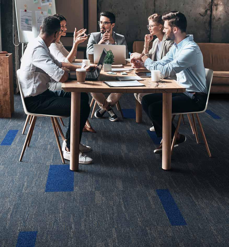 made from eco-friendly resources – specifically, 44,000 recycled PET bottles, which play a significant role in diverting plastic waste from landfills and the ocean. Created with people’s well-being in mind, the 100% recyclable EcoSoft® Carpet tiles are also PVC and bitumenfree, offer superior sound absorption, and provide a cushion effect to reduce leg fatigue.