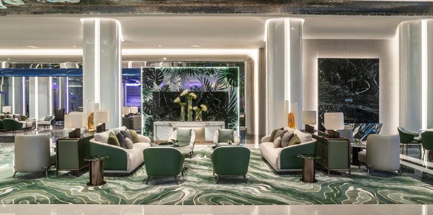 One of the most impressive aspects of The Londoner Macao is its five world-class hotel brands brought together under one roof: The Londoner Hotel, The Londoner apart-hotel adjacent to The St. Regis Macao, Conrad Macao, Sheraton Grand Macao Hotel, and The St. Regis Macao. In 2021, the hotel will also be presenting two floors of The David Beckham Suites ranging from 113 to 298 sqm. Once again, Royal Thai worked with SLD to furnish the 368-suite apart-hotel where the brand’s Axminster and handmade carpets were used to enhance approximately 42,500 sqm of space.