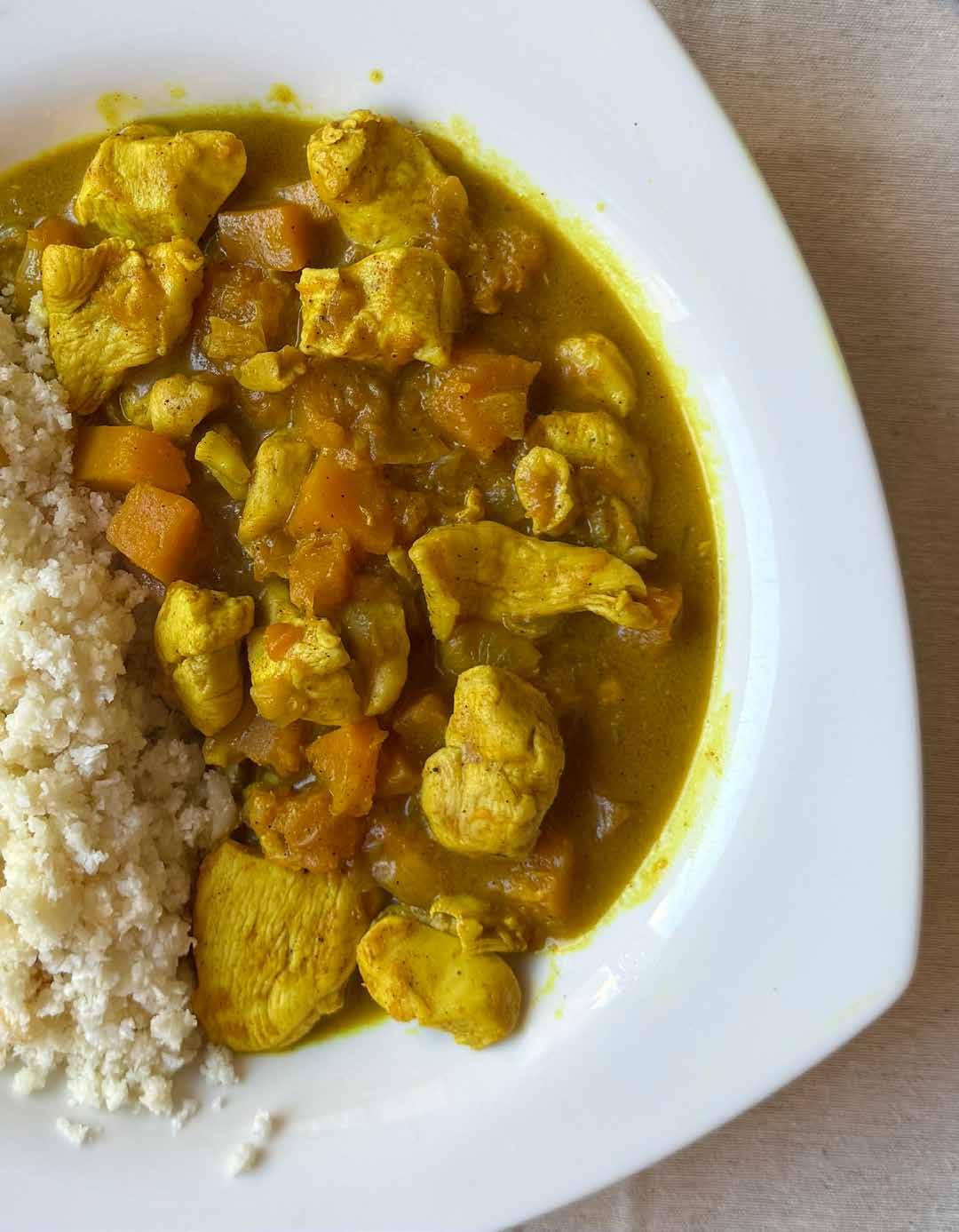 Pollastre al curri amb coliflor ratllada