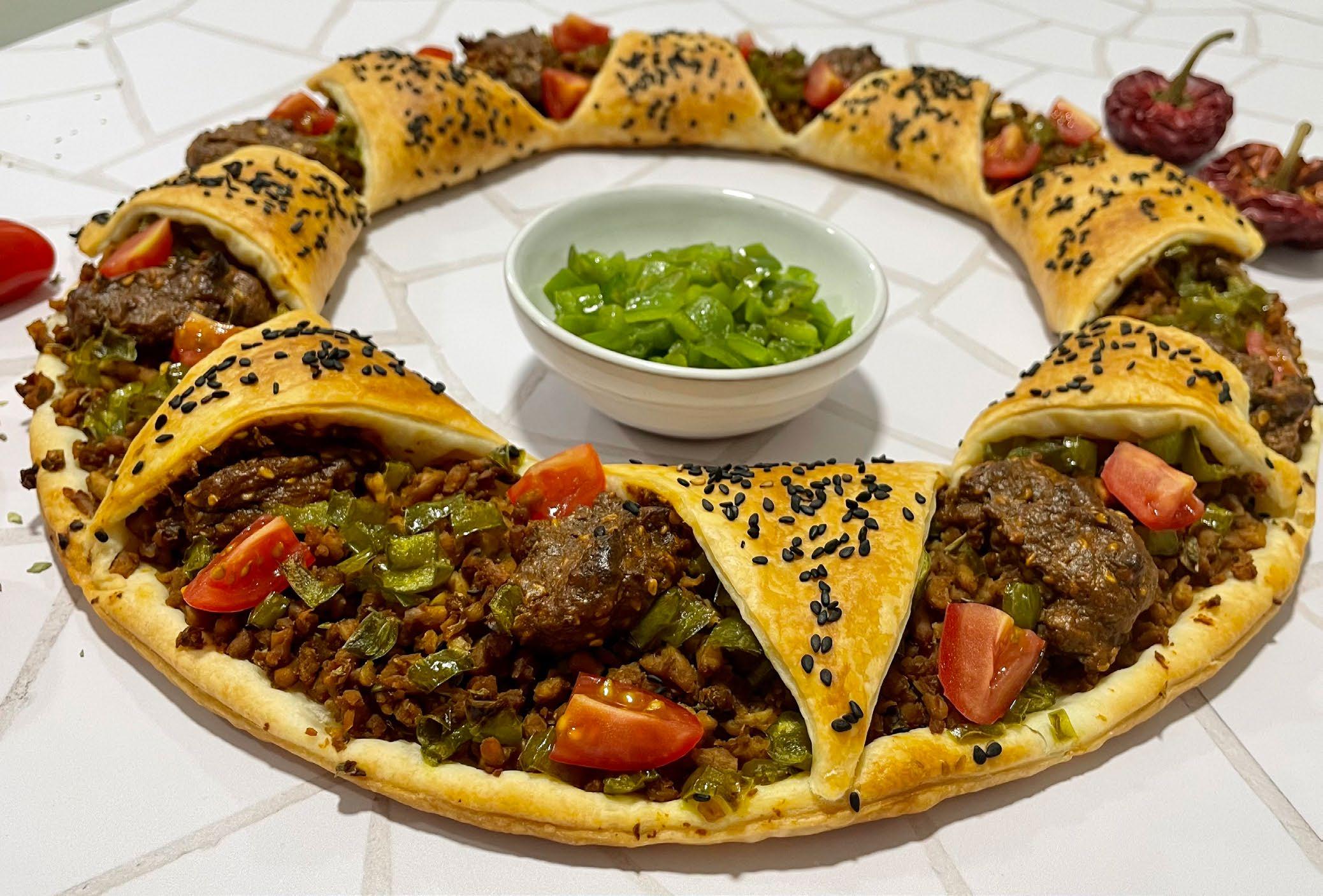 10. Pinta les parts de pasta fullada amb beguda de civada, decora-ho amb sèsam negre i introdueix la corona al centre del forn durant uns 20-25 minuts.