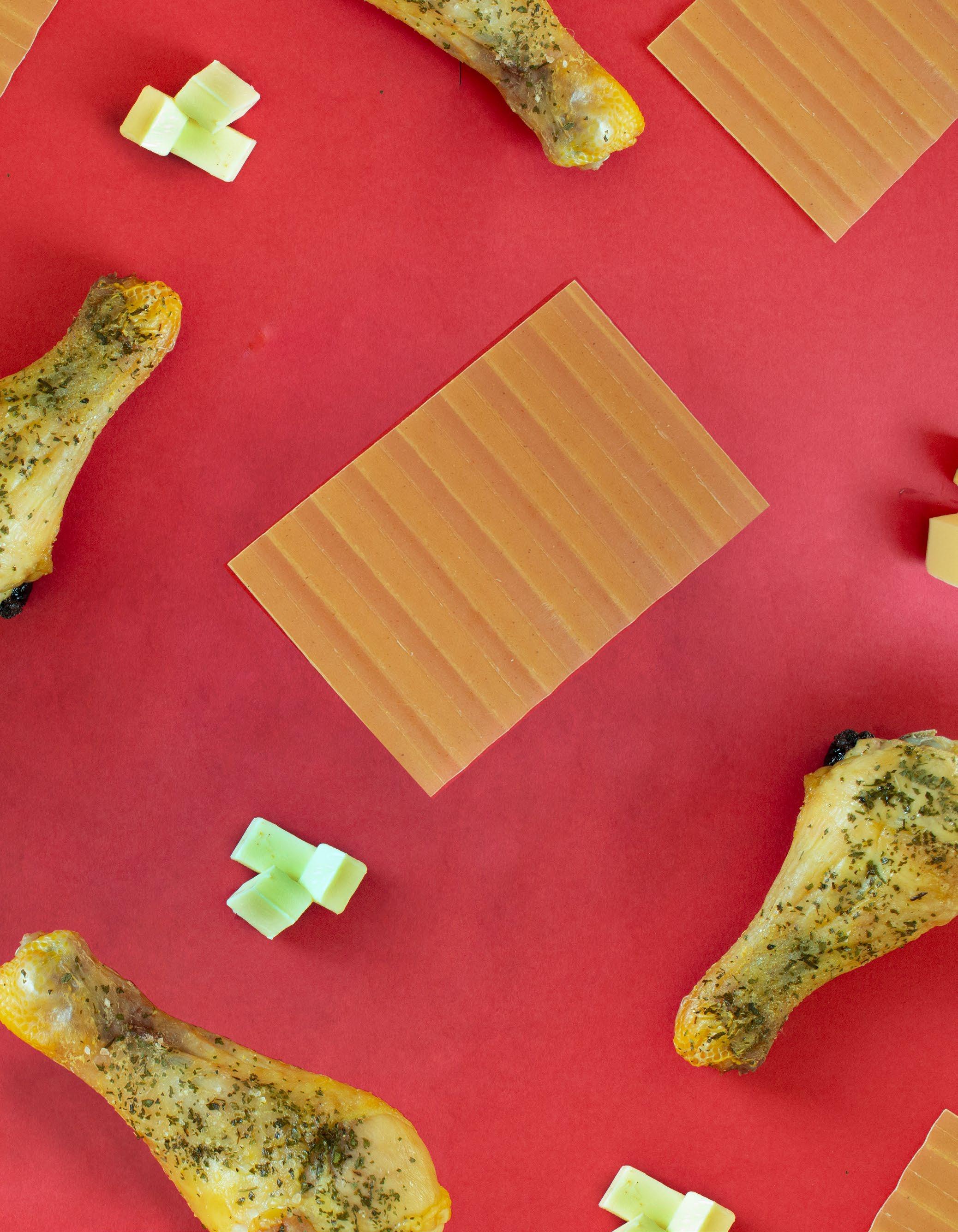 9. Aixeca els triangles un a un i col·loca’ls per damunt, assegurant-te de pressionar bé les puntes a la massa perquè no s’aixequin al forn.